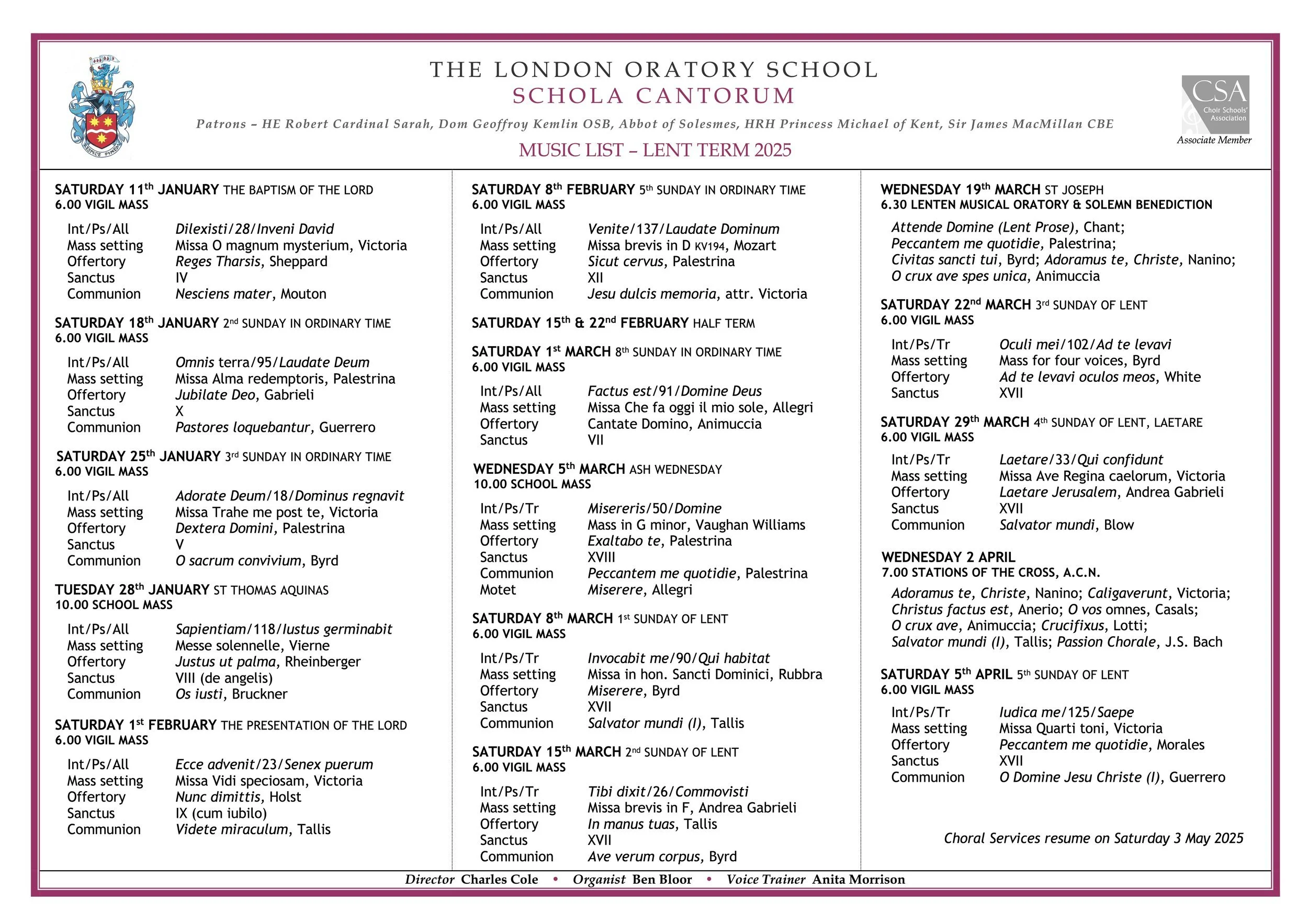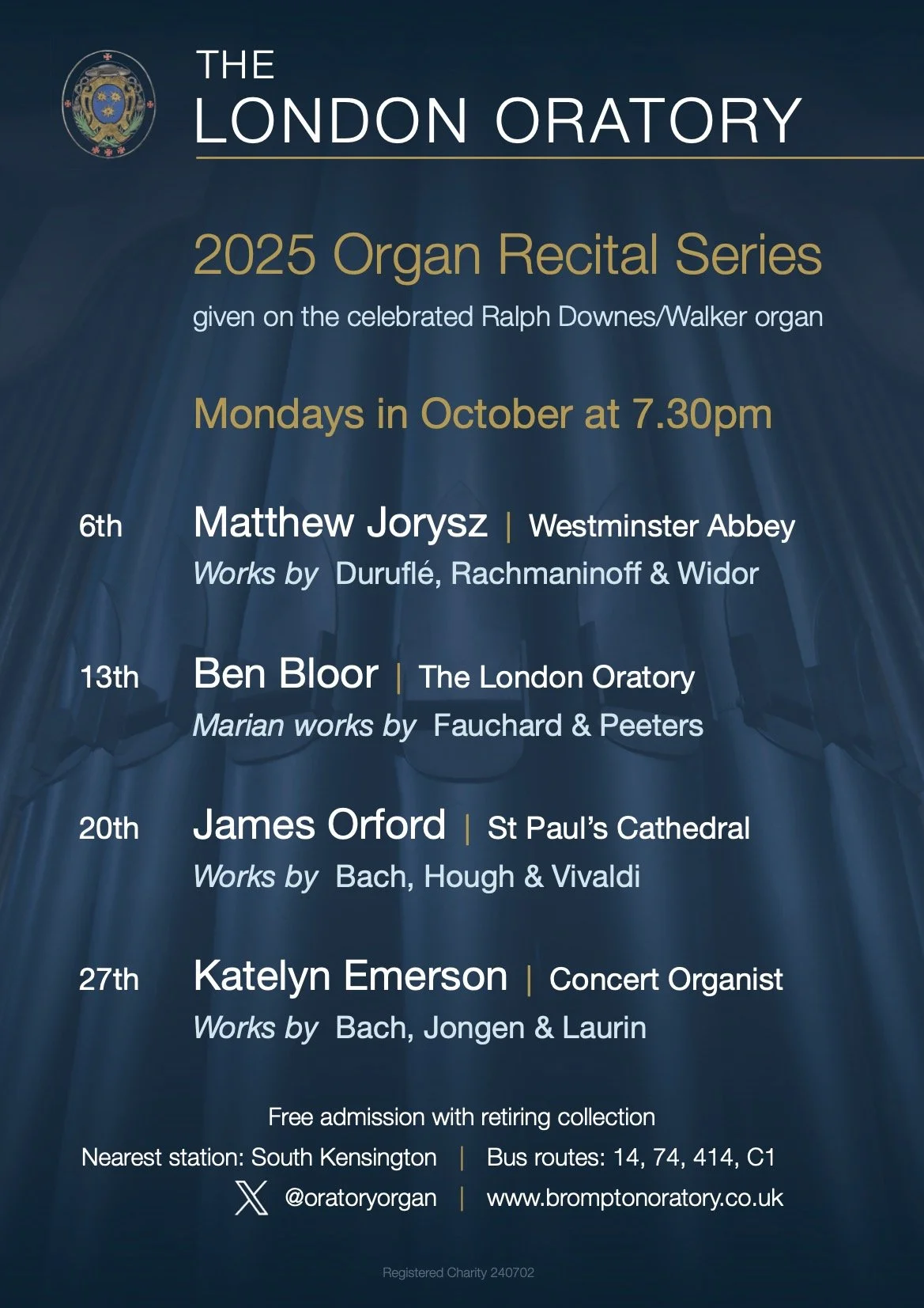 He is Assistant Director of Music at the Oratory and Director of the London Oratory Junior Choir which, in addition to its liturgical duties.